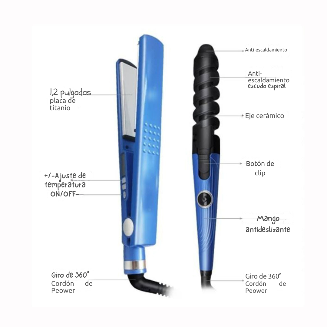 ✅Resultados profesionales:✨💇 Alisado y rizos impecables sin salir de casa🏡 ✅Cabello sano y brillante:🌟🔥 La tecnología de titanio protege el cabello del daño por calor. ✅Ahorro de tiempo y dinero: ⏳💸 Olvídate de costosas visitas a la peluquería. ✅Versatilidad:💃 Crea una gran variedad de peinados con un solo set.